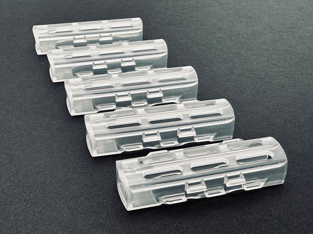 The new electric machine can also be automated with linear Multilift robotic systems and six-axis robots from Arburg. The exhibit is equipped with a Multilift V 30. At Fakuma 2024, the Allrounder 720 E Golden Electric with a clamping force of 2,800 kN and a size 800 injection unit will be producing PP razor covers by way of example. A 24-cavity mould from Hack will be used. The cycle time is around 11.5 seconds, with each moulded part weighing 1.2 grams. The 24 finished parts are then ejected in groups of four, clustered by cavity, into six boxes.