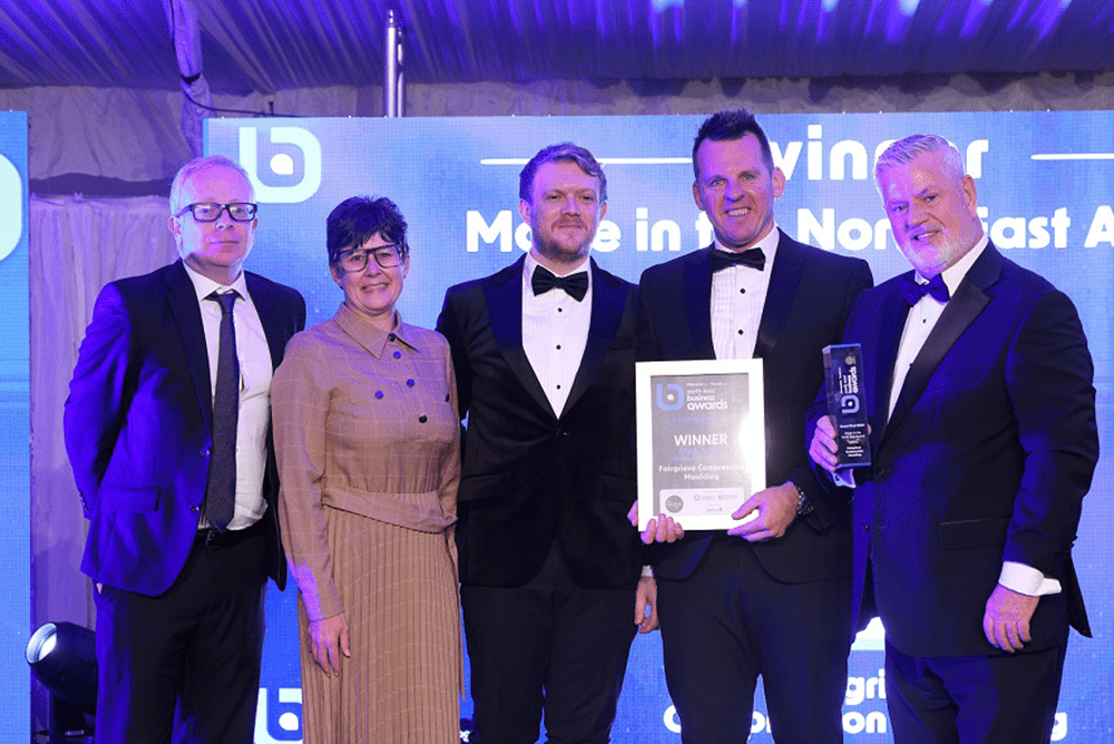 Fairgrieve Compression Moulding has been recognised at a prestigious awards event for the positive impact it has on manufacturing in the North East. The awards ‘celebrate innovation, entrepreneurship, technology and creativity and honour brilliant people going the extra mile for their customers and clients’, shining a light on the fantastic things businesses are doing to make a difference across the North East.