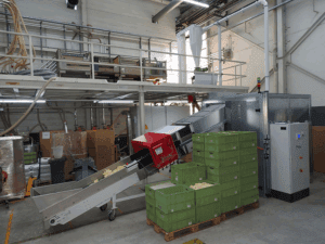 GETECHA supplied the entire pre-grinding process stage for Hansgrohe’s new recycling plant, consisting of a granulator, conveyor belt system and dust extraction and exhaust air system.
