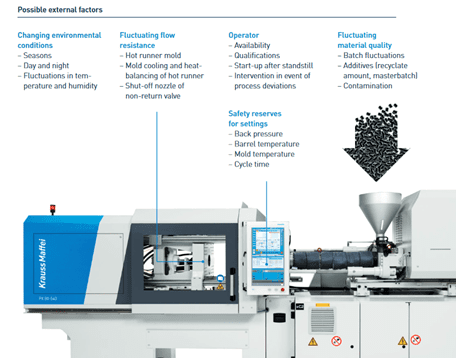 Every fluctuation in external factors can directly lead to changes in fluid viscosity between cycles, leading to a change in polymer behaviour in the mould.