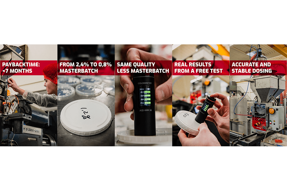 Labotek used a Delta-E meter to measure the colour difference between the original and reduced masterbatch dosage. Even at 0.8%, the values stayed well within tolerance, confirming consistent colour quality, even with less masterbatch.
