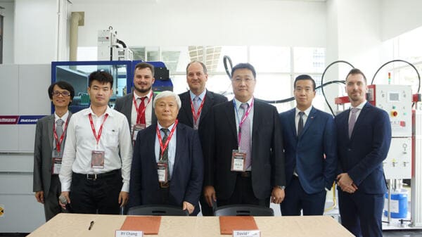CoreTech System Co., Ltd. (Moldex3D), the leading provider of engineering simulation solutions for the plastics industry, announced that it had signed a Memorandum of Understanding (MoU) with Wittmann Battenfeld, a leading global manufacturer and supplier of plastics processing equipment on July 5, to collaborate on innovations in liquid silicone rubber (LSR) injection moulding and accelerating the path to smart design and manufacturing. The MoU was signed on behalf of Moldex3D by Dr Rong-Yeu Chang, CEO and on behalf of Wittmann Battenfeld by Mr David Chen, President of Wittmann Battenfeld Taiwan.