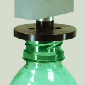 To make sure that the plastic bottle can withstand the forces encountered when the screw-cap is pushed down onto it after the filling process and later when it is stacked in the warehouse, an axial compressive strength test is performed.  Test standards based on ISBT (Standard Test Methods for PET Bottles) and ASTM D2659 (Column Crush Properties of Blown Thermoplastic Containers) are commonly adopted by manufacturers.