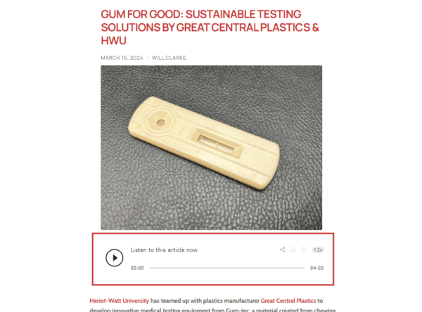 PlastikMedia, the marketing division of PlastikCity, has announced AI-powered audio descriptions for all newly published articles as a new addition to its digital news platform for the plastics industry in the UK and Ireland.