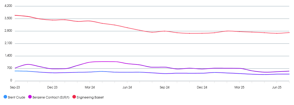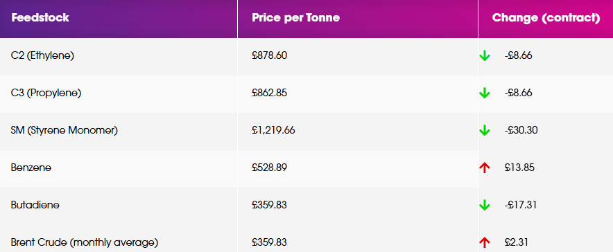 Whilst all August contract monomer prices, except Benzene, marginally eased for August, increased spot crude oil prices and GBP exchange rate weakness brought inflationary pressures to polymer pricing.