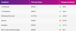If we compare pricing to this time last year, PE is roughly €170 / MT lower whilst Ethylene is only €115 / MT lower. PP Homopolymer is roughly €270 / MT lower whilst Propylene is only €120 / MT lower. Not a sustainable business for many producers of PP in Europe.