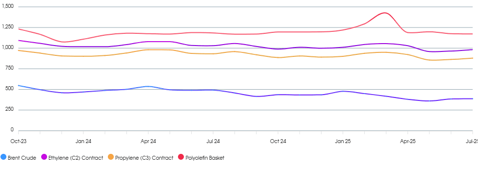 We continue to see further talk of rationalisation within the industry as European Producers continue to post losses in the face of some very challenging market conditions. Market demand continues to be weak couped with new production capacities on stream. In the first 5 months of 2025, the EU increased imports of PP by 12%.