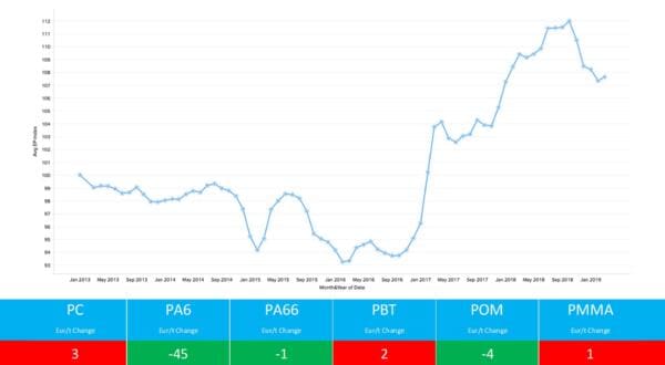PA66 pricing was largely stable in the March. Supply and demand are imbalanced with normal supply levels and much lower demand. The continuing sluggishness of the automotive segment is continuing to tip the demand versus supply balance. Price reductions are predicted in the coming month.