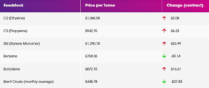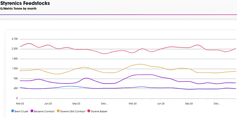 The increase in Styrene Monomer (SM) appears to be supply and demand-based, despite the fall in Benzene costs which is a common feedstock for SM production along with SM being a co-product from PO (propylene oxide) manufacture (feedstock for polyurethane). Some recent announcements concerning the rationalisation of PO may have been of influence.