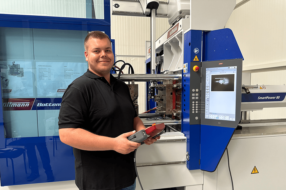 The continuously increasing skilled labour shortage calls for new, creative ideas. Here, the story of Max Rusch is a prime example. The prospective mechatronics engineer has roots in his home region Thuringia in Germany. The WITTMANN Group with its German subsidiaries in Nuremberg and Meinerzhagen has offered him a training program close to home with the prospect of permanent employment as a service engineer in the Thuringian area following successful completion of his training in spring 2025.